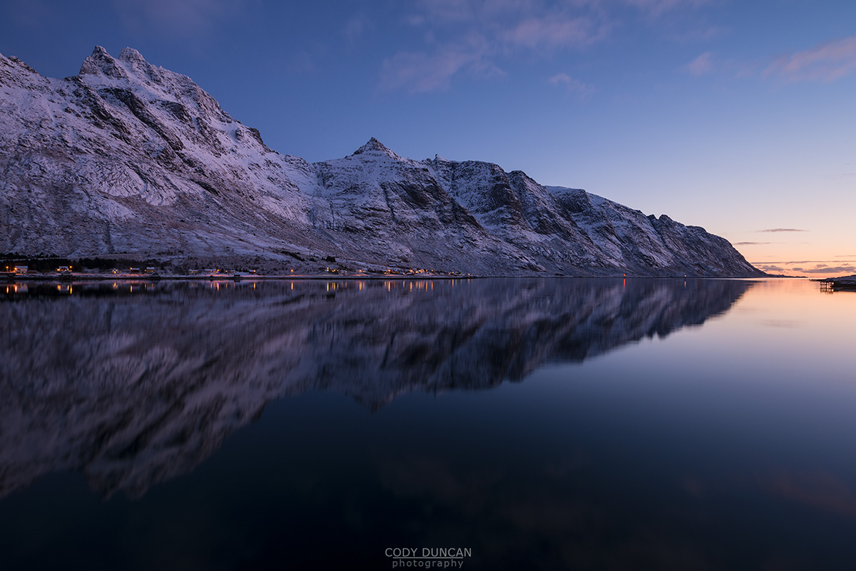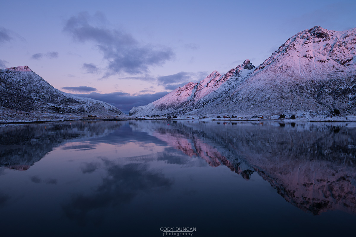 Photo: Reka rising over the frozen landscape, Vesterålen, Norway. November 2016